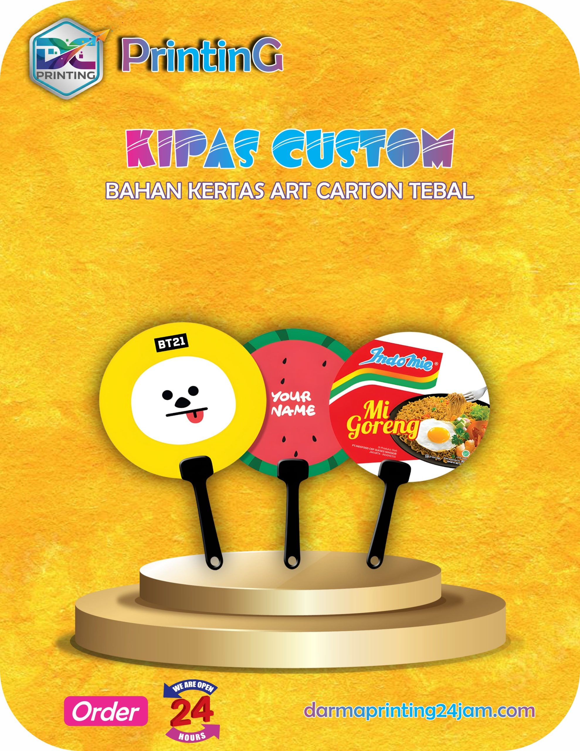 Anda dapat menarik perhatian pelanggan dan tamu acara dengan kipas custom yang unik dan bermanfaat. Oleh karena itu, jika Anda